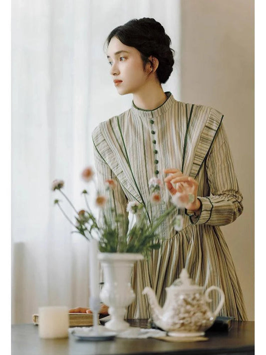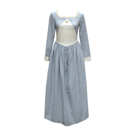 I'm so pleased with this dress. It fits perfectly, and the craftsmanship is really good, with excellent attention to detail, right down to the buttons selected. The cut of the dress seems accurate to the regency period - the skirt is flat at the front, and full at the back. I wore it to two balls in one day, and found it very comfortable.