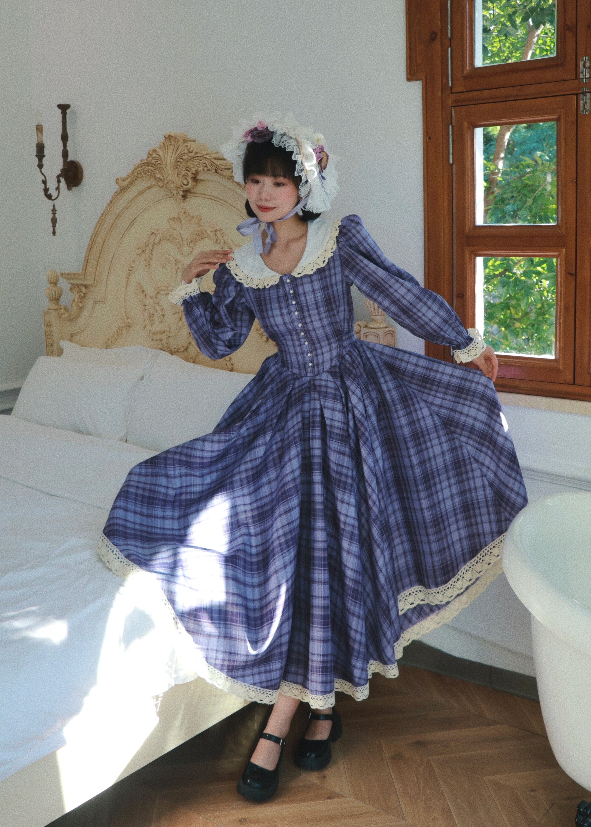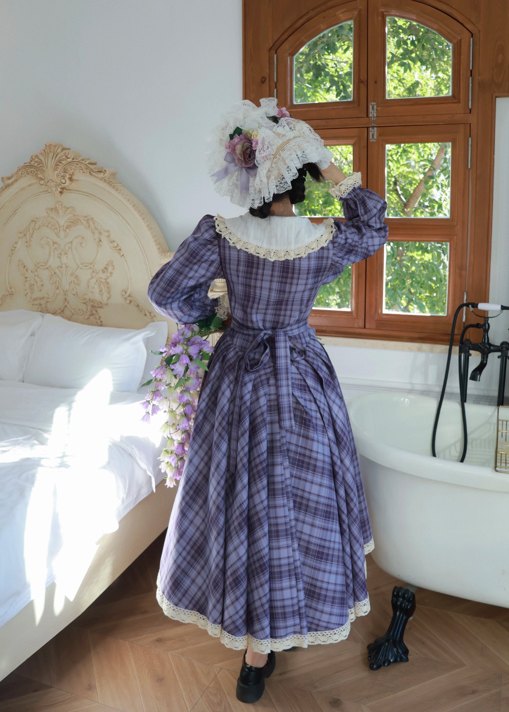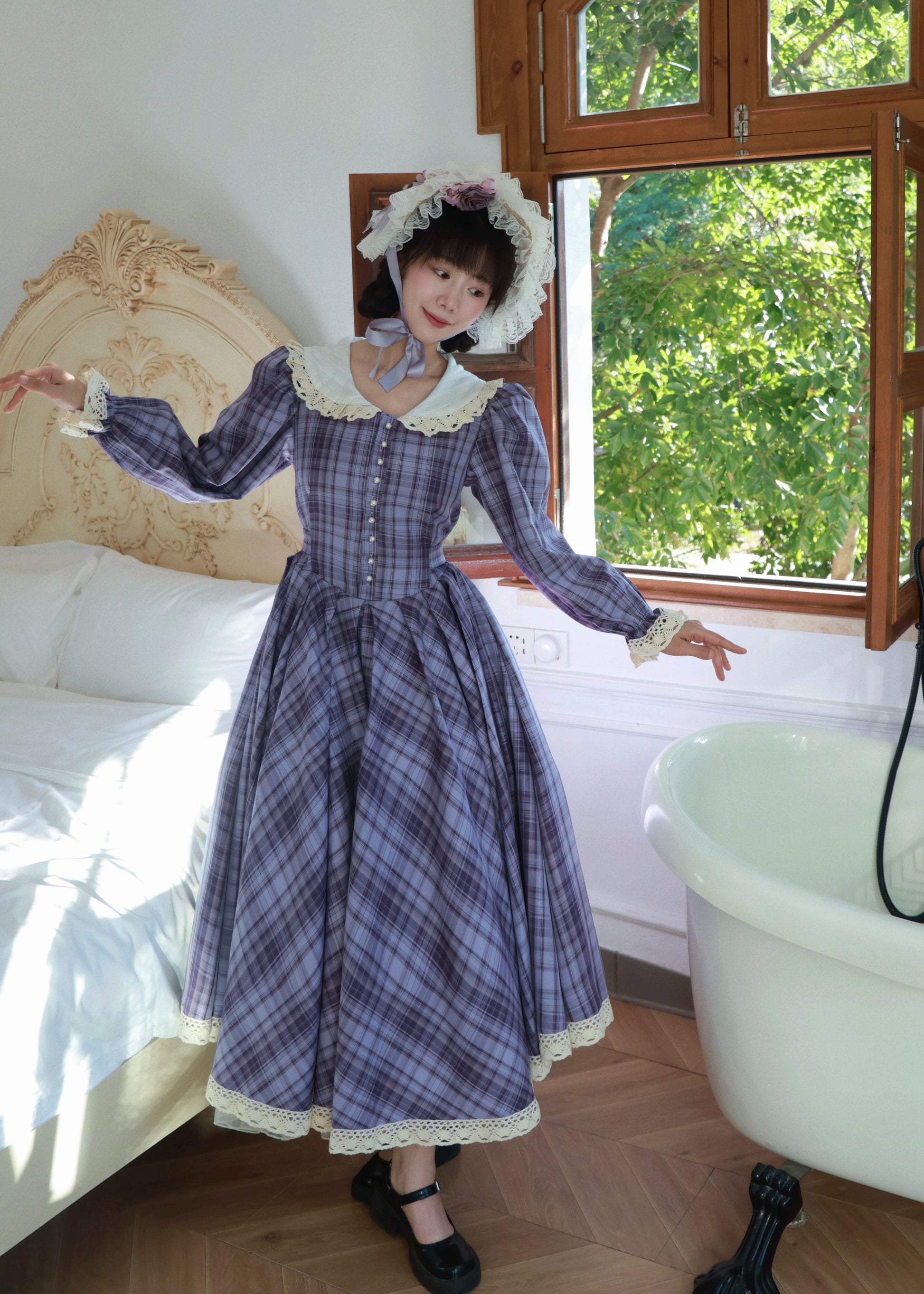 1970s Tartan Puff Sleeves Picnic Dress (Customizable)