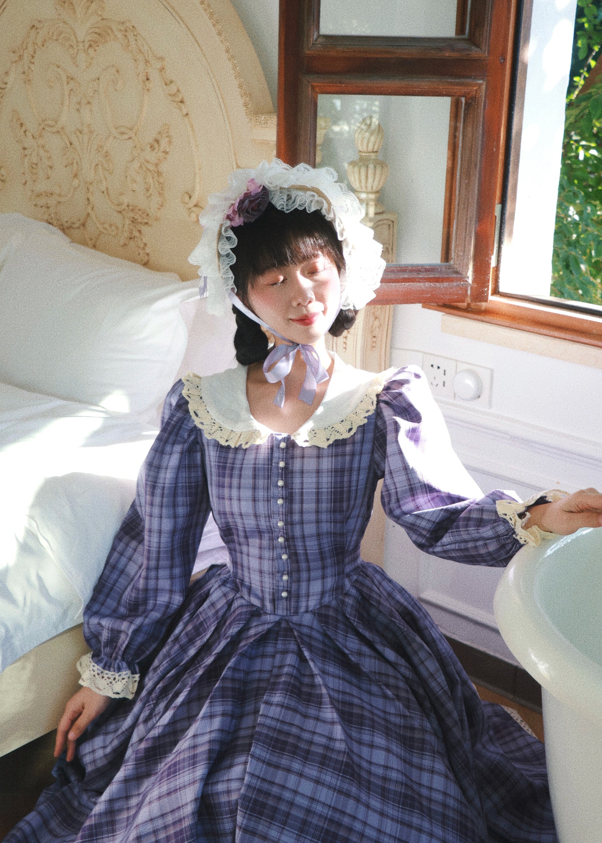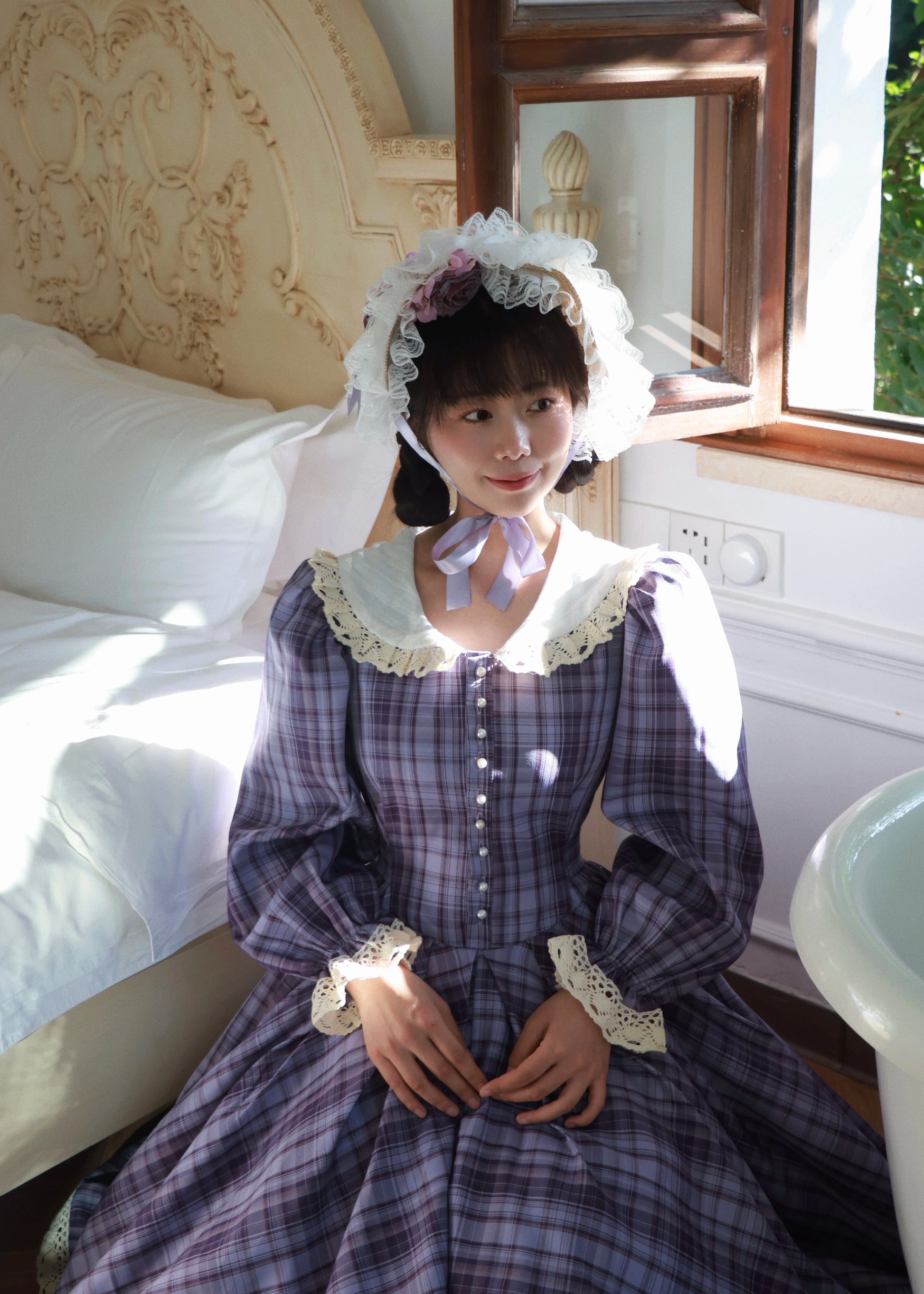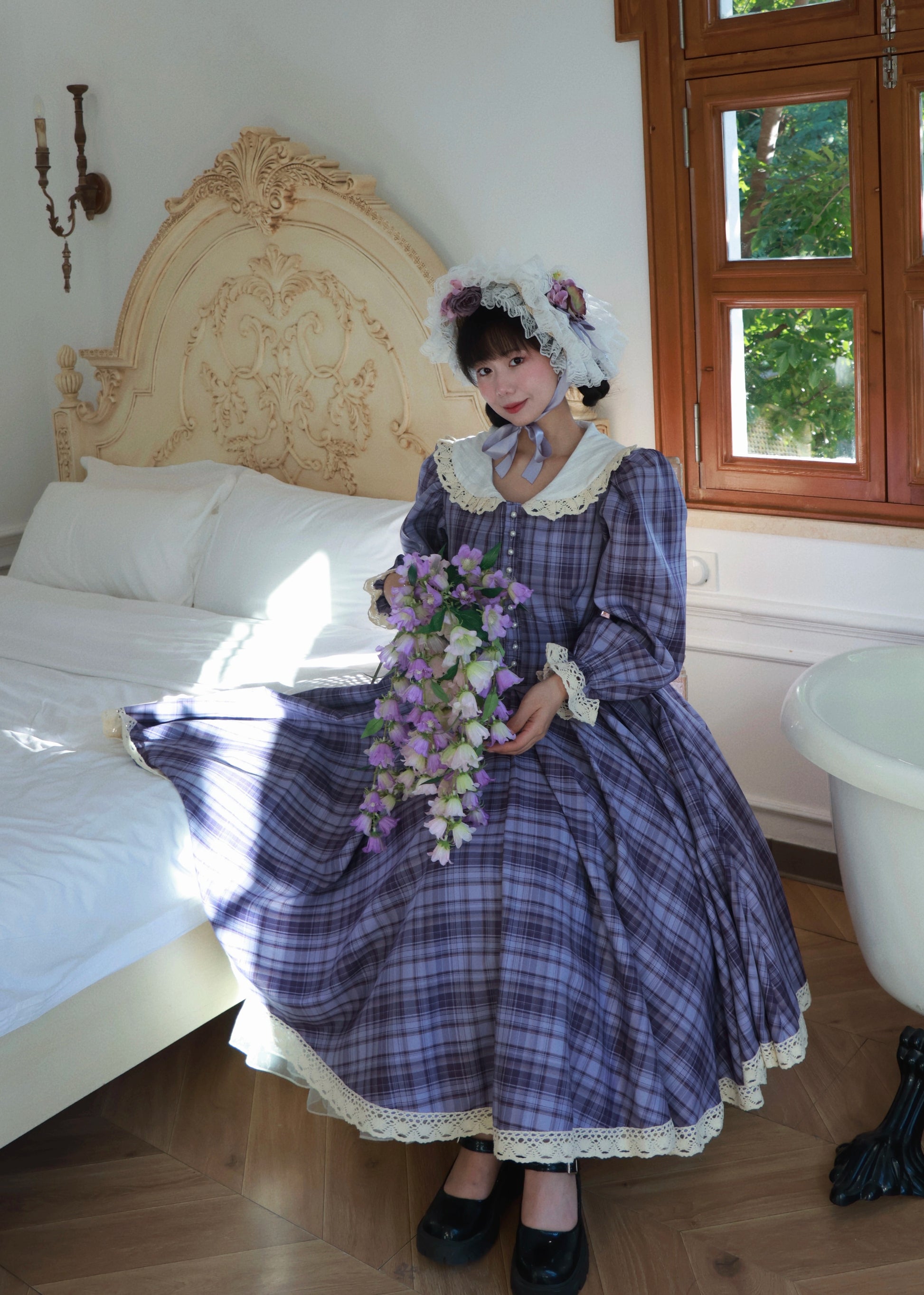 1970s Tartan Puff Sleeves Picnic Dress (Customizable)