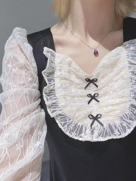 Details: detachable sash, lace cuffs, 2 pieces