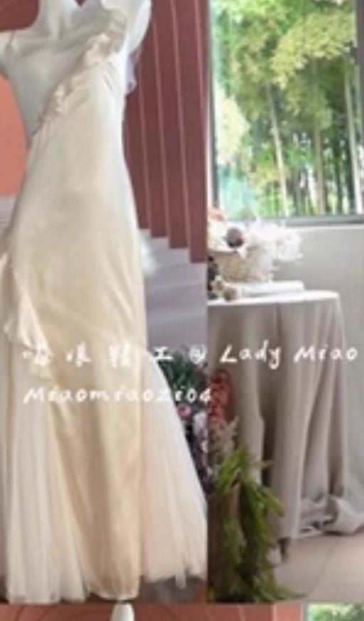Dreamy Vintage Ruffled Sleeveless Bridal Dress